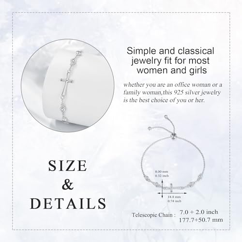 Cross Bracelet for Women Girls Sterling Silver Christian Sideways Cross Bracelets Danity Religious Link Chain Jewelry Gifts
