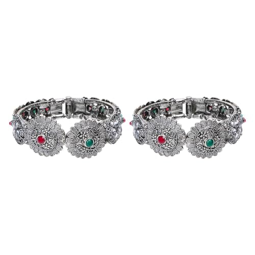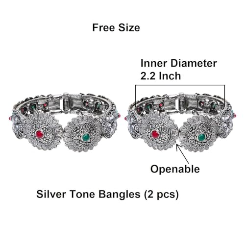 Item display length: 2.12 inchesMaterial: AlloyMetal type: AlloyClasp type: Slip onGem type: No gemstoneItem type name: Bangle BraceletsPlease confirm the bangle size using video, size chart, Or size guide. Kindly check Size/ Diameter of old bangle (and compare) before ordering to avoid disappointment. We offer many sizes from the smallest to largest. The color may slightly vary due to the photographic lighting sources.Size: Inner Diameter- 2.2 inch, Set Content: 2 Pieces. Indian oxidized bangle set for women, Metal: Alloy, Closure: Hinge Openable Free Size Bangle Bracelet.Oxidized antique silver tone bangle bracelets set embellished with metal carving, crystal, kundan, gives this jewelry set a impeccable traditional cum contemporary look.This trendy western cum simple statement look piece go with everything in your closet from ethnic to part wear festival or any other occasion. Attractive charming fashion bangles set. Ideal for Party, Wedding, Engagement, Daily Wear, formals, Bridesmaids, Mother of the Bride, Pageants, Homecoming, or any other Special Occasions.Ideal for Valentine, Anniversary, New Year, Christmas, Diwali, Mother's Day, Women's Day, Thanksgiving. Perfect for everyday use. first-class materials and excellent craftsmanship ensure long-lasting durability.