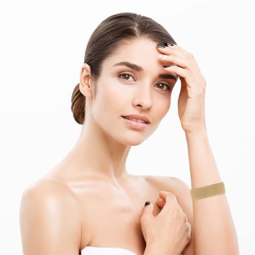 • Elegant Gold Mesh Design: This stainless steel bracelet features a contemporary woven mesh pattern, creating a luxurious vintage-inspired look that adds a touch of sophistication to any outfit.