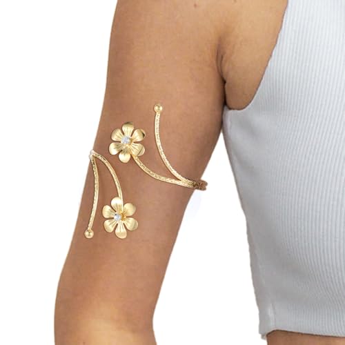 Gold Arm Cuff for Women Rhinestone Flower Upper Arm Cuff Adjustable Arms Bracelet Bangle Boho Armband Friendship Gift