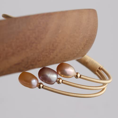 in-demand ! Sonateomber Dainty Gold Freshwater Pearls Chain Bracelet for Women, Statement Paperclip Rosary Purple Pearl Beaded Bangle Cuff Jewelry Gifts