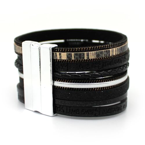 Material: Faux LeatherMetal type: Stainless SteelClasp type: BuckleChain type: Bead ChainGem type: Created quartzUnique Design: This bracelet is retro in style, with multi-layer bands design, decorated with finely crafted metal piece and pearls, to make it an eye-catching accessory for your daily outfit.Secure Clasp: It is easy to put on and take off with the first-class magnetic clasp.High quality guarantee: The bracelet is made of top grade PU leather, comfortable to wear, no fading, no pungent smell. All decorating crystals and beads are firmly fixed, not easily falling.Perfect gifts: This trendy bracelet is an ideal gift for both women.Dimensions: Length: 7.67 inch/19.5 cm, Width: 1.49 inch/3.8 cm. Perfect for everyday use. High quality materials and excellent craftsmanship ensure long-lasting durability.