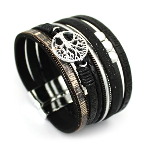 P Ammy Fashion® Inspirational Tree of Life Wide Leather Bracelets for Women Boho Cuff Bohemian Jewelry Gifts Bangle with Magnetic Clasp