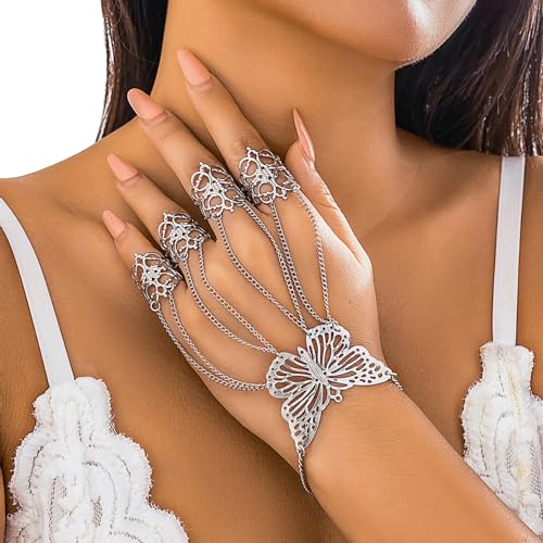 Why Choose Summer Punk Butterfly Finger Bracelets with Ring,Exaggerated Finger Wrist Chains Rings Bracelets Gothic Link Chain Finger Bracelet Festival Halloween Hand Chain Body Jewelry for Women?