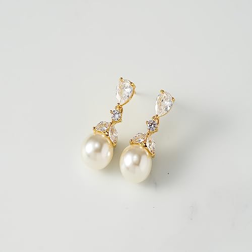 in-demand ! SWEETV Cubic Zirconia Pearl Drop Wedding Earrings for Brides, Ivory Bridal Pearl Earrings for Bridesmaid Jewelry Gift