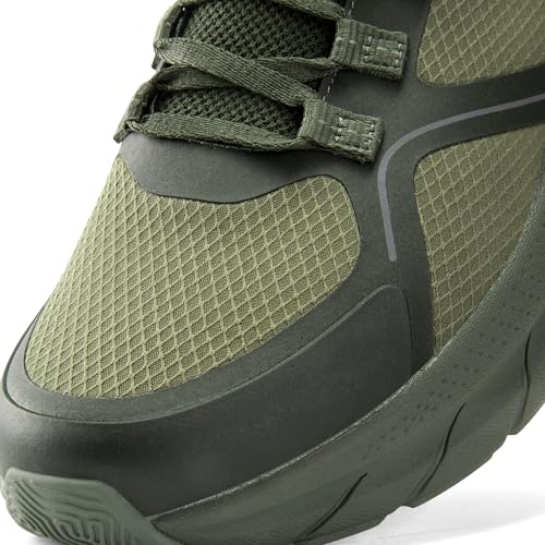 Sole material: EVA,RubberOuter material: Mesh,TPUClosure type: Lace-UpWater resistance level: WaterproofEnhanced Comfort: These men's mesh walking shoes feature an EVA material cushioned thick sole design, reducing pressure on knees and ankles for a relaxing rebounding feel.Exceptional Support: The TPU shank located in the midsole offers strong support, preventing twists and sprains while providing extra stability.Lightweight & Enduring: With rubber patches on the forefoot and heel along with a stress point design, these sneakers are lightweight yet durable, ensuring outstanding grip and traction.Effortless Wear: Enjoy a quick lacing system and slip-on design that offers a snug fit while making it easy to put on and take off.Weather-Ready: Featuring a TPU film and woven mesh upper, our sneakers are splash-proof, meeting your needs all day long. Perfect for everyday use. excellent materials and excellent craftsmanship ensure long-lasting durability.