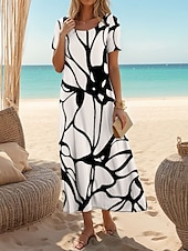 in-demand ! Women's Maxi Dress Casual Dress Casual Daily Loose Fit Floral Color Block Short Sleeve Crew Neck Black Summer