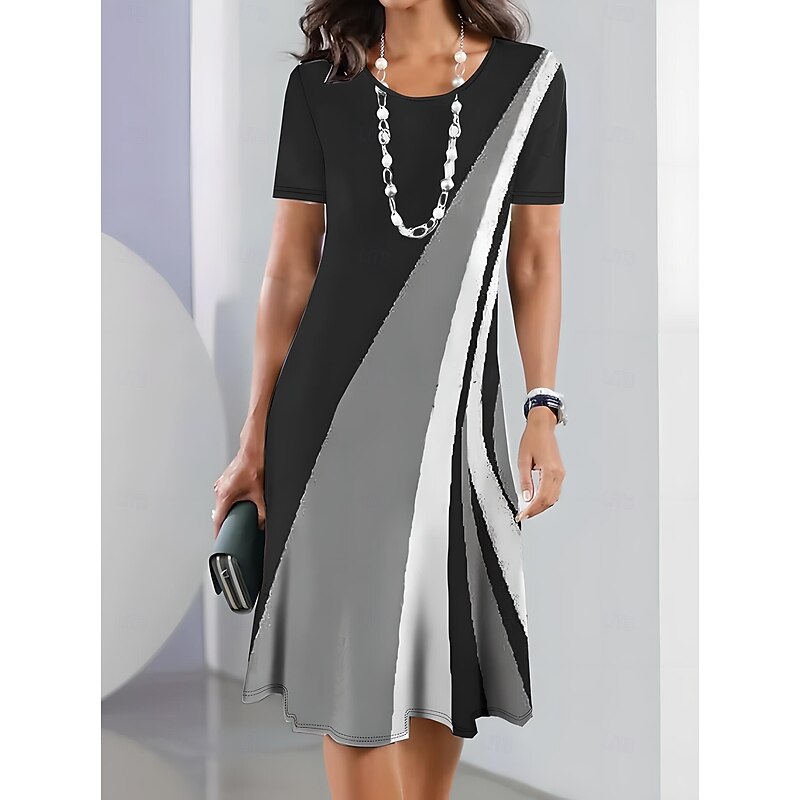 in-demand ! Women's Elegant Party Evening Midi Dress Crew Neck Short Sleeve Shift Dress A Line Dress Casual Daily Tea Regular Fit Ombre Graphic Black Pink Sky Blue Dark Blue