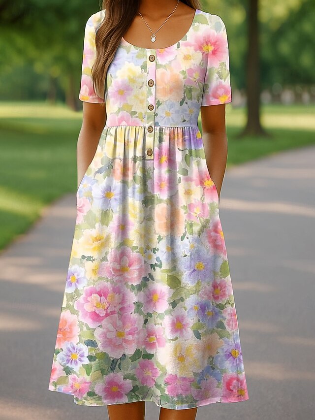 This Women's Midi Dress Casual Dress Sundress A Line Dress Summer Dress Vacation Casual Beach Holiday Regular Fit Floral Graphic Short Sleeve Crew Neck White Pink Purple Green Summer Spring combines elegant design with practical functionality. Every detail has been carefully considered to ensure you get the foremost possible experience. The finest construction means this product will serve you well for years to come.