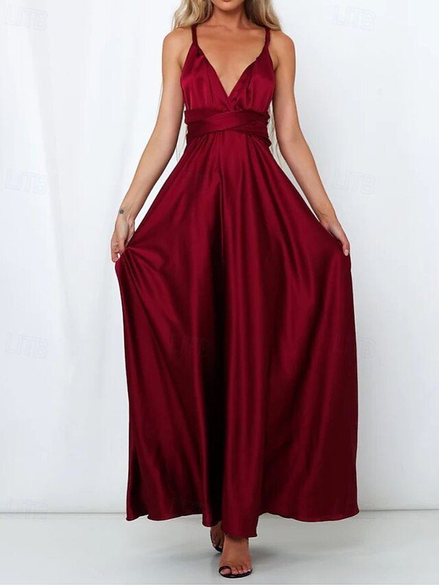 Why Choose Women's Long Dress Maxi Dress Party Dress Cocktail Dress Satin Dress Slip Dress Fashion present-day Party Evening Party Regular Fit Plain Long Sleeve V Neck Pink Wine Navy Blue Dark Green Spring Fall?