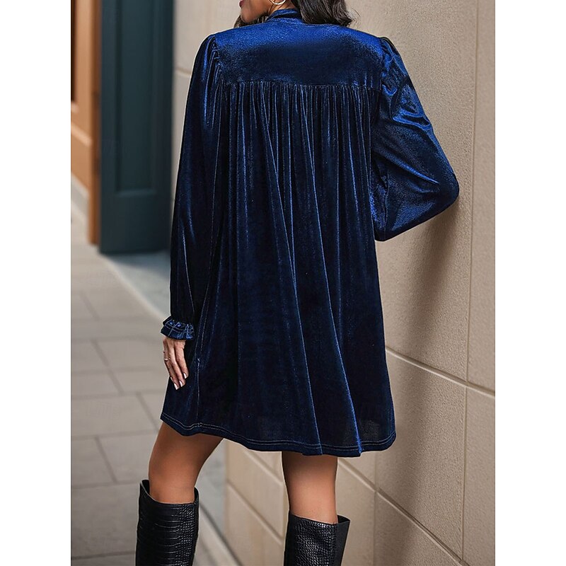 Women's Mini Dress Velvet Dress Cocktail Dress Plain Dress Casual Party Sports & Outdoor Street Regular Fit Plain Long Sleeve V Neck Wine Navy Blue Green Fall Winter