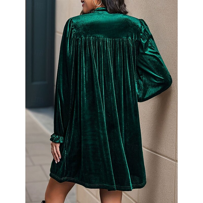 Highlights [Fabric] Made from luxurious velvet, this women's dress features a micro-elastic fabric that offers both comfort and a gentle texture, ensuring a silky smooth finish and elegant sheen. The deep tones of green, navy blue, and wine add a rich, sophisticated touch, perfect for seasonal wear in fall and winter. [Design Highlights] The dress showcases a flattering V-neckline that elegantly elongates the neck, combined with long sleeves that are gently puffed and gathered at the cuffs for a subtle voluminous look. The ruched design accents the fitted waist before flaring out into a graceful A-line silhouette, resulting in a chic and flowing shape. [Occasions] Perfectly suited for street wear, parties, and both sports and outdoor activities, this dress easily transitions from casual outings to evening events. Whether you're attending a cozy gathering or exploring the city, this velvet mini dress provides a blend of style and functionality. [Fit and Size Range] Available in sizes S, M, L, and XL, this dress offers a regular fit ensuring comfort across various body types. Suitable for a wide range of sizes, it enhances every woman's wardrobe with both style and versatility. [Care Instructions] To maintain its luxurious feel, machine wash this dress separately, and follow care guidelines to ensure its longevity and vibrancy. Perfect for everyday use. superior materials and excellent craftsmanship ensure long-lasting durability.
