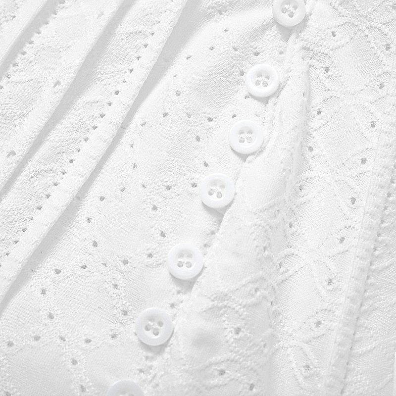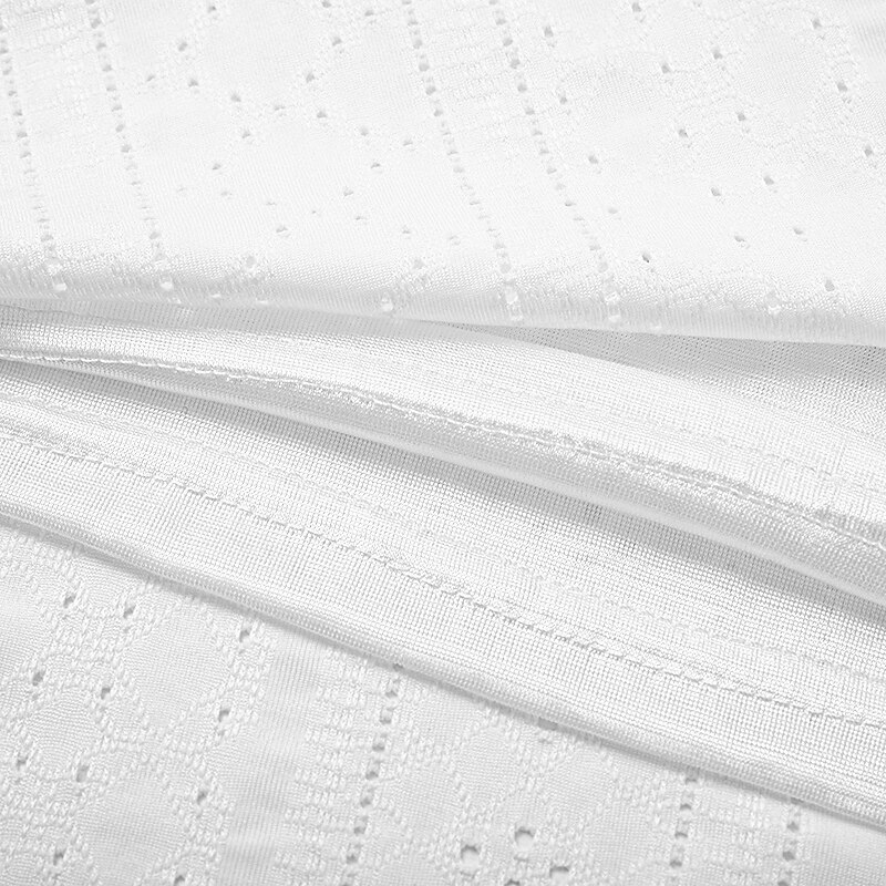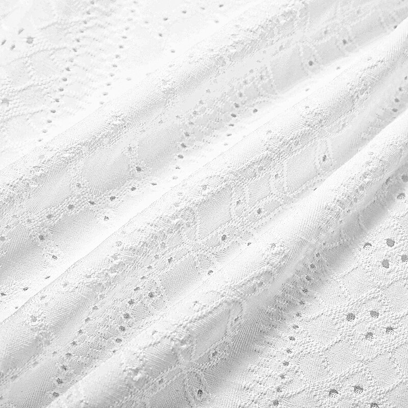 This stunning summer dress is crafted from a lightweight and breathable polyester fabric, offering micro-elasticity for comfortable wear in warm weather. The material is enhanced with elegant eyelet detailing for a sophisticated touch.