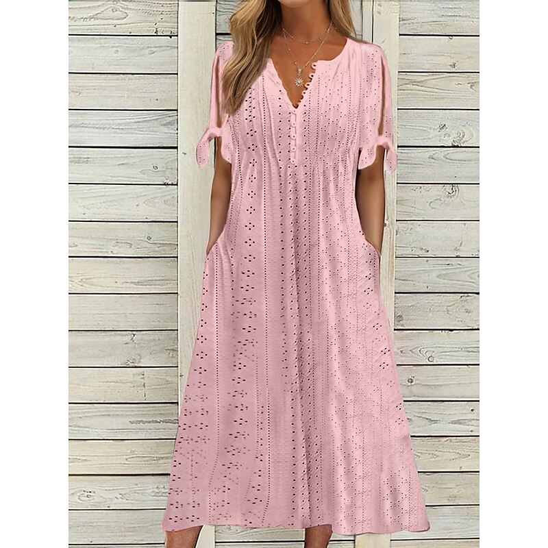 More information about Women's Midi Dress A Line Dress Summer Dress Boho Dress Pleated Dress Elegant Fashion up-to-date Outdoor Vacation Daily Loose Fit Plain Short Sleeve V Neck White Pink Blue Green Summer Spring