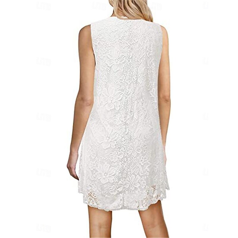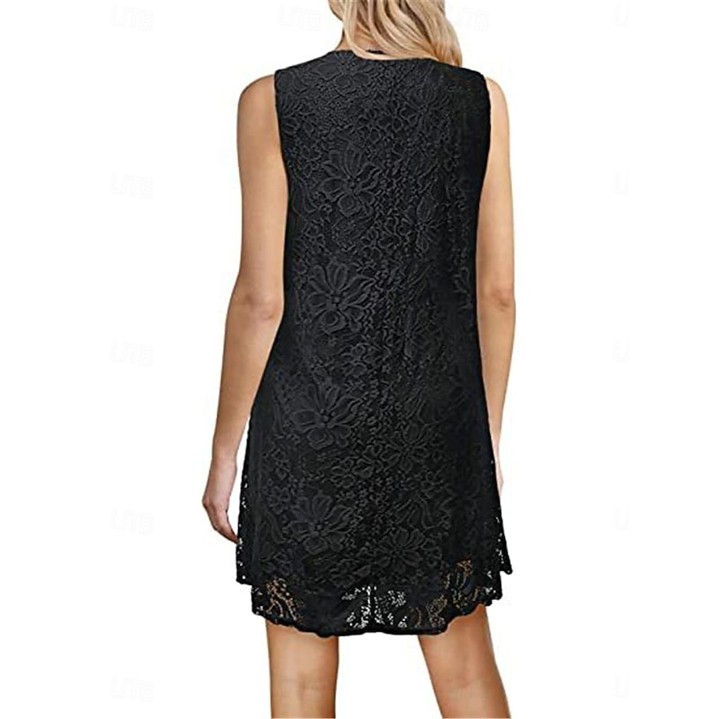 Highlights [Fabric] : Crafted from delicate lace, this women's mini dress combines sophistication and femininity with its intricate floral patterns. The lightweight material ensures breathability, making it perfect for warm weather. [Silhouette] : The dress features a slightly flared silhouette that falls effortlessly above the knee, providing a comfortable and flattering fit for casual and semi-formal settings alike. [Design Highlights] : This dress boasts a iconic crew neck and short sleeves, offering a versatile style that transitions seamlessly from day to night. The simple yet elegant design emphasizes its timeless appeal. [Occasions] : Ideal for dates, streetwear, or holiday events, this lace mini dress adds a touch of charm and elegance to any occasion. Its versatility makes it a staple piece for various events and gatherings. [Size Range] : Available in sizes S, M, L, XL, and 2XL, this dress ensures a perfect fit for a broad range of body types. Choose from classic colors like burgundy, white, and black to suit your personal style. Perfect for everyday use. first-class materials and excellent craftsmanship ensure long-lasting durability.