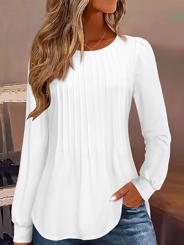 This Women's Shirt Blouse Solid Color Vintage chic Classic Long Sleeve Crew Neck Regular Tops Daily Black White Spring Fall combines elegant design with practical functionality. Every detail has been carefully considered to ensure you get the best possible experience. The supreme construction means this product will serve you well for years to come.