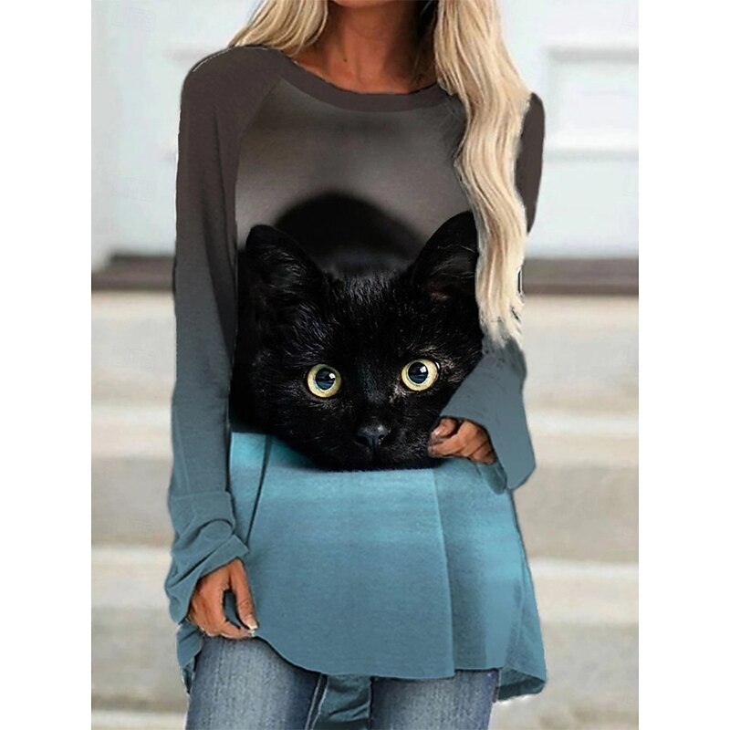 This Women's T shirt Long Sleeve Graphic Animal Cat Vintage chic Classic Long Sleeve Crew Neck Round Neck Long Tops Daily Print Black Blue Orange Spring Fall Prefall combines elegant design with practical functionality. Every detail has been carefully considered to ensure you get the best possible experience. The supreme construction means this product will serve you well for years to come.