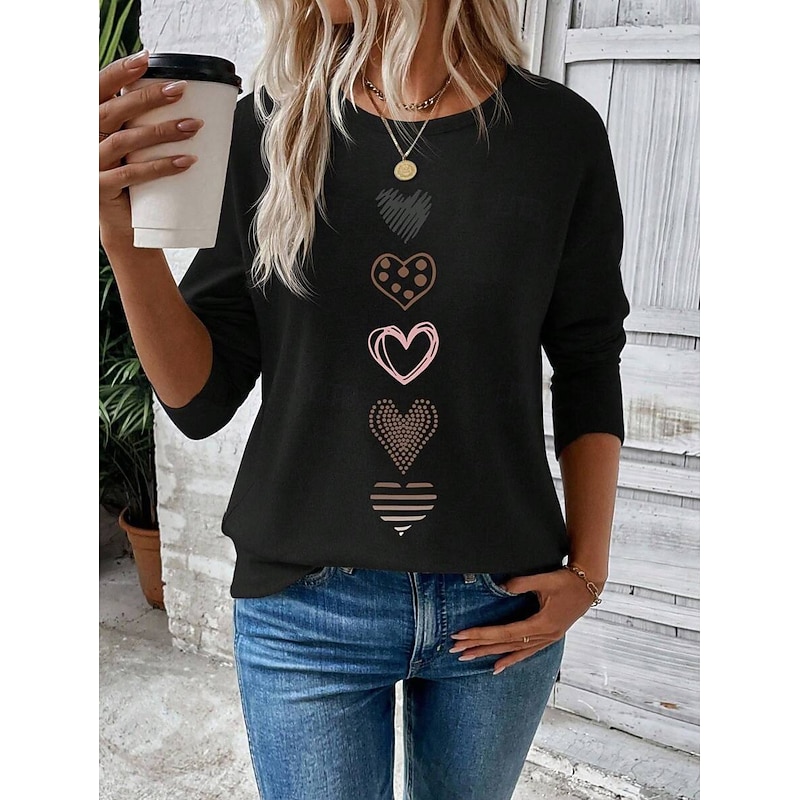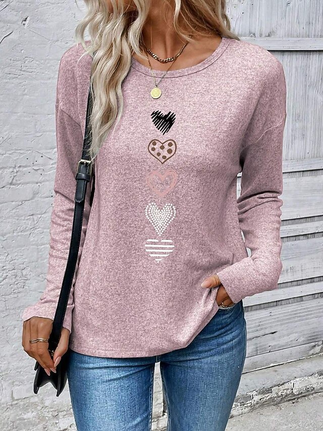 This Women's T Shirt Heart Graphic Vintage Fashion chic Long Sleeve Crew Neck Round Neck Regular Tops Daily Weekend Print Black White Pink Blue Spring Fall Winter combines elegant design with practical functionality. Every detail has been carefully considered to ensure you get the best possible experience. The supreme construction means this product will serve you well for years to come.
