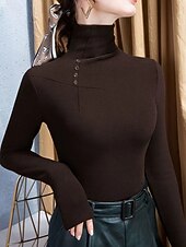 This Women's Blouse Solid Color chic Casual Long Sleeve Turtleneck Regular Tops Daily Buttons Black White Brown Spring Fall Winter combines elegant design with practical functionality. Every detail has been carefully considered to ensure you get the best possible experience. The supreme construction means this product will serve you well for years to come.