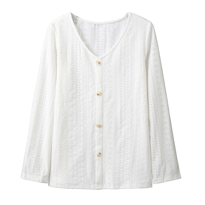 Women's White Elegant Lace Tops Eyelet Blouse Dressy Tops Fashion Basic Buttons Long Sleeve Regular Tops V Neck Casual Romantic Petite Tops Summer Holiday Wear White Light Green Light Blue Fall