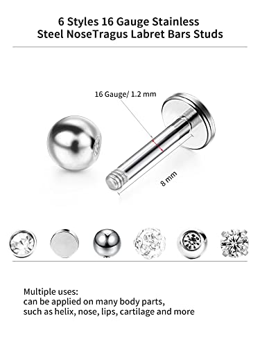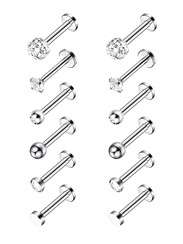 Why Choose 12pc Stainless Steel Nose Studs Tragus Bars Labret Bars Crystal Ball Body Piercing Jewelry, 6 Designs, 16 Gauge?