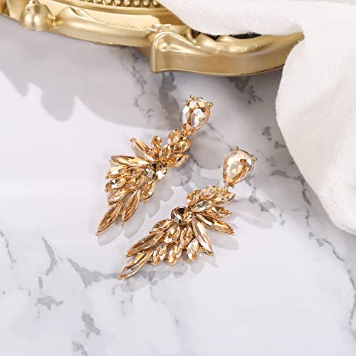 BriLove Women's Wedding Bridal Crystal Teardrop Multi Marquise Cluster Bling Dangle Earrings
