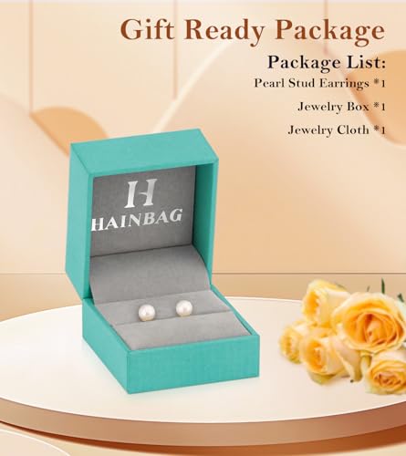 • AAAAA Quality Genuine Pearls: HAINBAG pearl stud earrings for women are made of genuine freshwater pearls. Each pearl picked based on its color, luster, and cleanliness. Natural color with good luster and smooth surface.