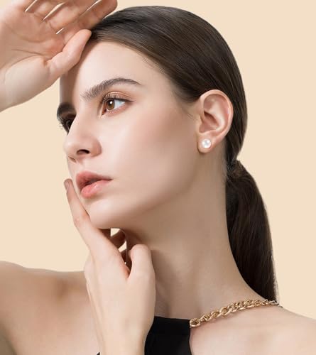 More information about Freshwater Pearl Stud Earrings for Women, Hypoallergenic 18K Gold Vermeil Earrings Studs with Genuine Round White Pearls