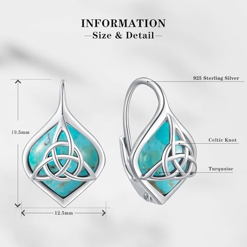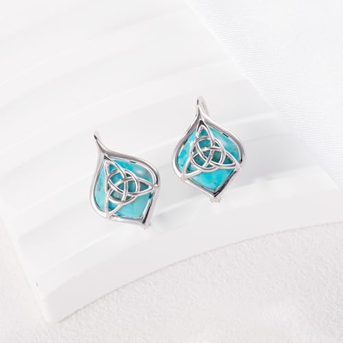 Turquoise Earrings for Women 925 Sterling Silver Celtic Knot Dangle Drop Earrings with Leverback Clasp Boho Jewelry Gifts