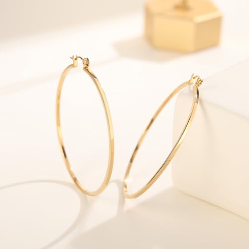 in-demand ! 14K Gold Hoop Earrings for Women Stunning Oversized Gold Hoop Chunky Earrings for Women Elegant Thin Gold Hoops 50mm