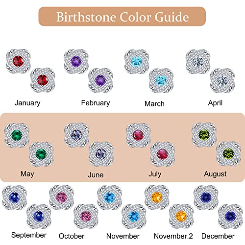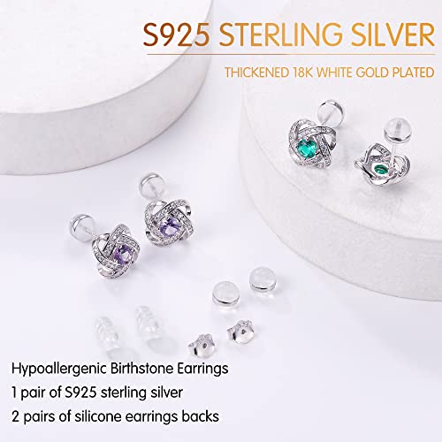 in-demand ! SMILEST Knot Birthstone Stud Earrings, Sparkle Round Cut Birthstone Earrings in 18K White Gold Plated Sterling Silver, impeccable for Women's Birthday Gifts