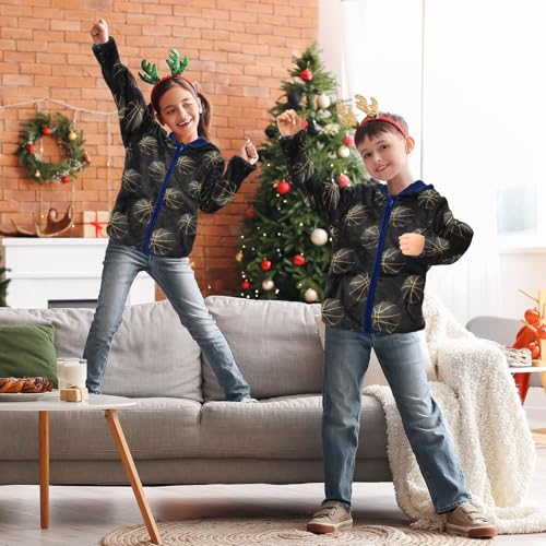 CHIFIGNO Basketball Black Kids Polar Fleece Lined Winter Jackets, Toddler Boy Fleece Jacket with Hooded 3T