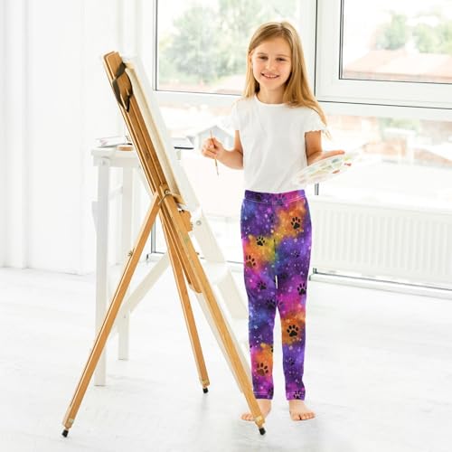 Colorful Dog Paw Tie Dye Girls Leggings gentle Stretch Workout Yoga Dance Pants for Kids Casual Tights