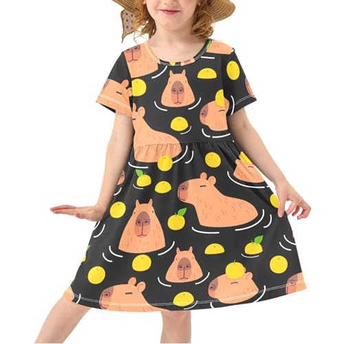in-demand ! Girls' Short Sleeve Dress Cartoon Summer One-Piece Dress A-Line Swing Skater Dresses 2-8T