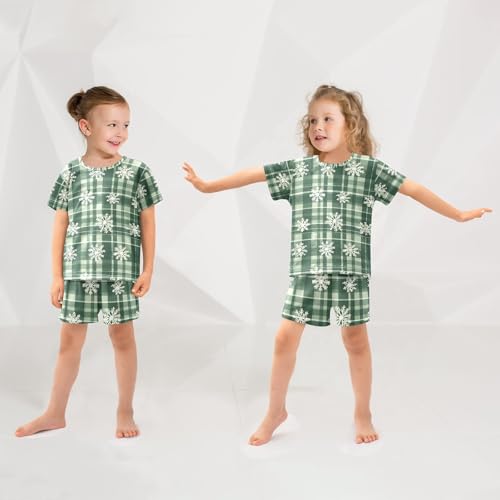 in-demand ! ALAZA Green Snowflake Plaid Christmas Pajamas Set Short Sleeve Cotton Sleepwear Summer Pjs 2 Piece 5-14Y