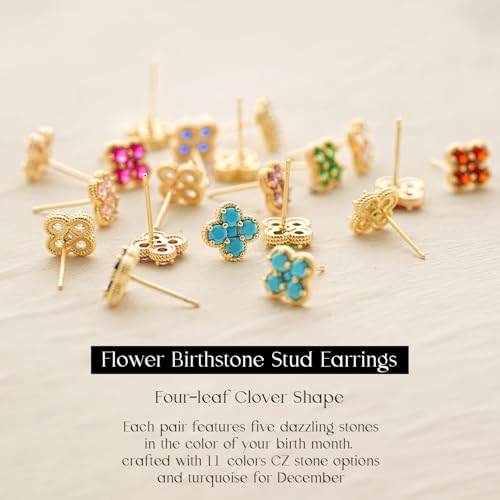 MYEARS Stud Earrings for Women Gold Flower Four-leaf-clover 12 Month Birthstone 14K Small elementary Hypoallergenic Birthday Gift Jewelry