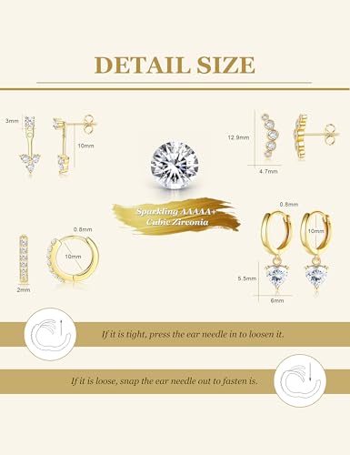 • Gold Hoop Earrings Set --4 different trendy earrings in a set :Stud earrings,earring jackets,small hoop earrings and hoop dangle earrings. Each basic and fashionable gold earrings set has been carefully designed and matched so that you will never go wrong in any of your daily outfits