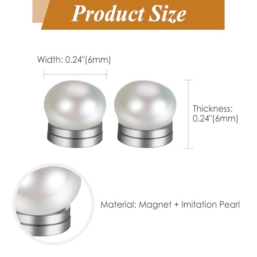 Material: Stainless SteelMetal type: Stainless SteelBack Finding: MagneticEarring design: Non PiercedGem type: No GemstoneItem type name: Stud Earrings6MM-10MM CLIP ON MAGNETIC EARRINGS - 6PCS Round Pearl Studs. Fake Gauges Non-Piercing Clip On Stud Earrings, Perfect size 6mm, 8mm, 10mm, Looks Great on Ears.MAGNET EARRINGS STUDS - Non-Pierced Stud Earrings, Convenient to Wear No Need to Piercing Ears, Good Choice for Birthday, Valentines, Christmas GiftsLIGHTWEIGHT AND EASY TO WEAR - Strong Clasp, Stainless Steel Metal,Solid, No Fading and Seem very Sturdy. Suitable for Unisex; iconic Design, Trendy.PERFECT GIFTS TO MEN WOMEN - Gorgeous Jewelry Gift for Anyone in your Life. Perfect Gift for Halloween, Anniversary, Christmas, Valentines, Birthday, Wedding, Ceremony, Back to School.PACKAE INCLUDES - 3 Pairs Round Pearl Earrings Studs (6mm, 8mm, 10mm), 1 x Velvet Gifts Bag Perfect for everyday use. first-class materials and excellent craftsmanship ensure long-lasting durability.
