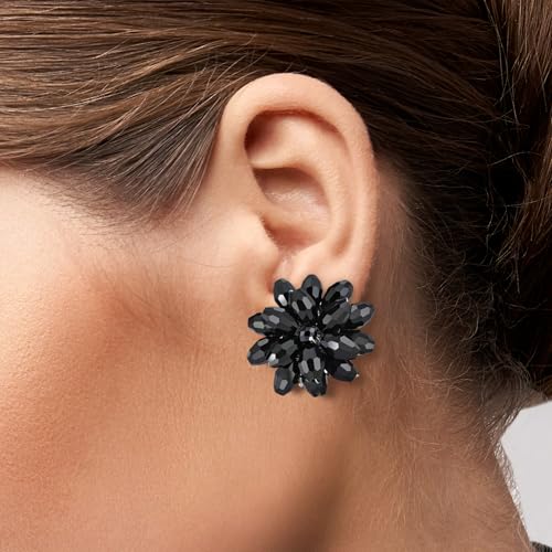AeraVida Dazzling Black Chrysanthemum Flower Crystals Base Metal Clip on Earrings | Black Flower Clip on Earrings | Black Jewelry Earrings | Chrysanthemum Earrings for Women