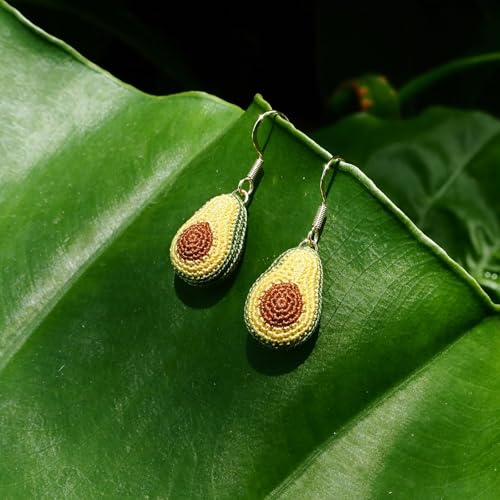 Item width: 0.4 inchesMaterial: Woolen yarnMetal type: Sterling SilverBack Finding: French HookEarring design: DangleGem type: No Gemstone【Premium, Hypoallergenic Materials】Made with 100% mercerized cotton and 925 sterling silver hooks – nickel-free, rust-resistant, and safe for sensitive ears. Includes clear silicone backs for comfort and stability.【Lightweight & 3D Design - 1g Ultra-Light】Each earring measures 1.5*1*4cm, featuring a fun 3D avocado shape that stands out without weighing you down.【Handcrafted & distinctive】Every pair is hand-crocheted with care, making each one a truly one-of-a-kind accessory full of personality and charm.【Great for Gifting & Everyday Wear】Perfect for birthdays, holidays, parties, or casual outfits - an adorable gift idea for women and girls who love something different.【Bonus:Personal Scent Diffuser】Lightly spray your favorite perfume onto the cotton to turn your earrings into a mini fragrance diffuser - carry your scent with you all day.【Our Guarantee】We’ll make sure to provide a quick and satisfying solution for you. Perfect for everyday use. superior materials and excellent craftsmanship ensure long-lasting durability.