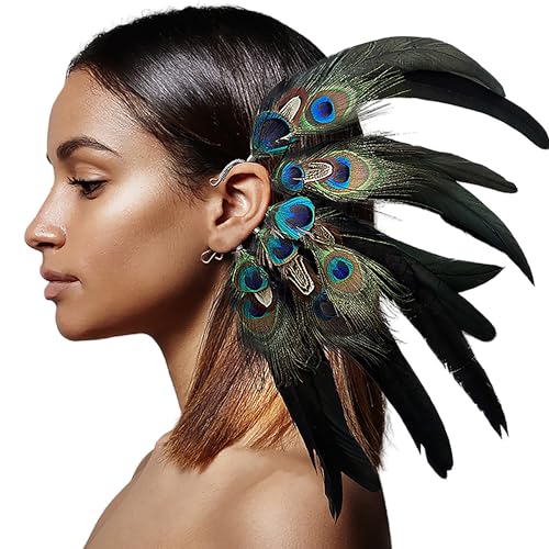 Peacock Feather Handmade Ear Cuff,peacock feather earrings,wedding ear cuff,Festival earrings,Long peacock feathers,Tribal,Natural feathers(A pair)