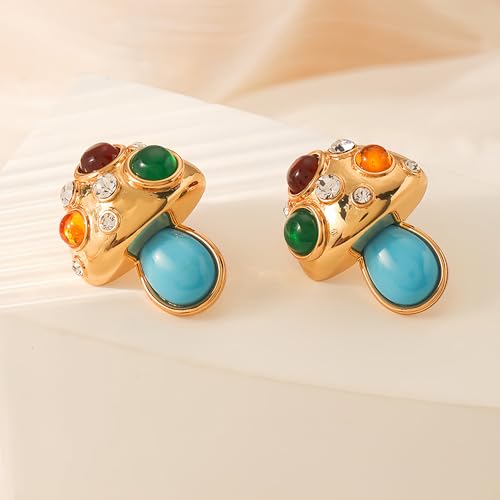 Gold Plated Rhinestone Resin Hypoallergenic Lightweight Retro Color Mushroom Earrings for Women Medieval Retro Ear studs