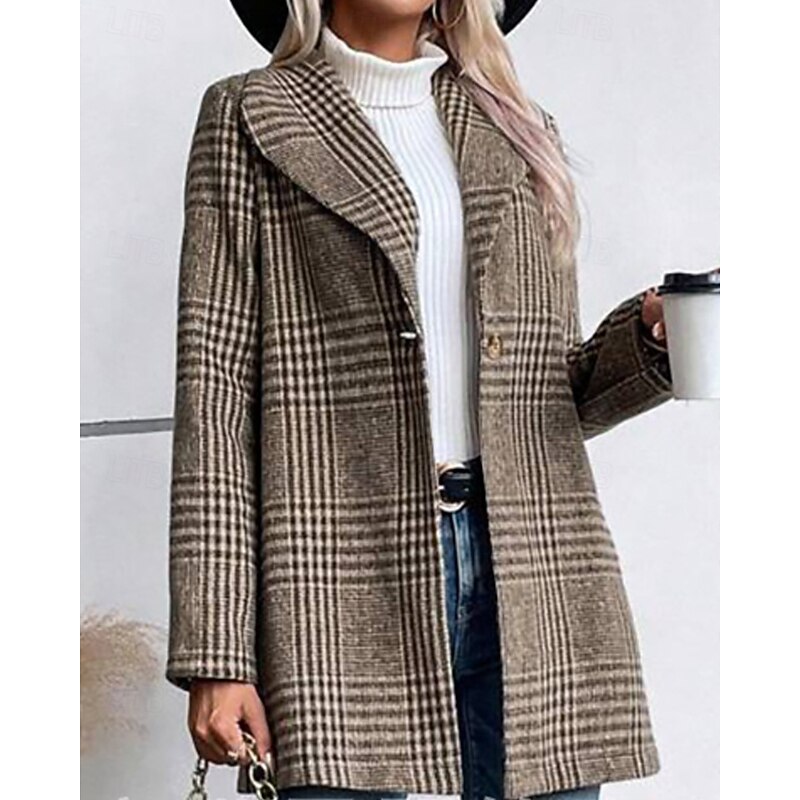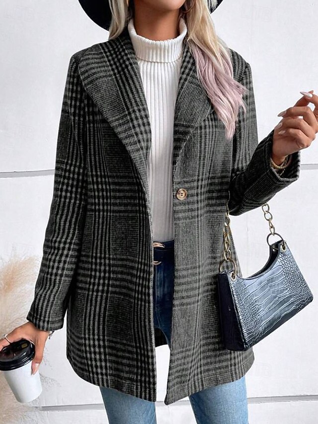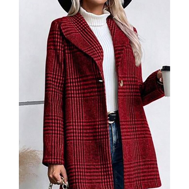 This Women's Coat Warm pleasant Buttons Casual Plaid Outdoor Holiday Single Breasted Regular Turndown Regular Fit Long Sleeve Outerwear Red Camel Gray Fall Winter combines elegant design with practical functionality. Every detail has been carefully considered to ensure you get the best possible experience. The supreme construction means this product will serve you well for years to come.