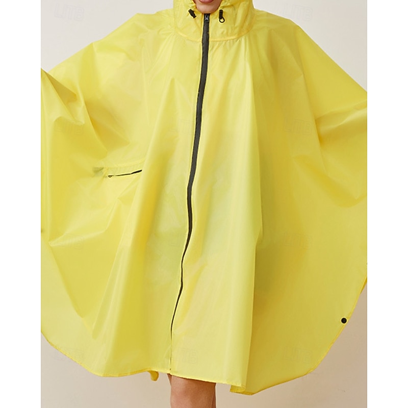 Why Choose Women's Cloak / Capes Waterproof Windproof Zipper Pocket Casual Plain Outdoor Vacation Street Going out Long Hooded Loose Fit Long Sleeve Outerwear Yellow Blue Fall Winter?