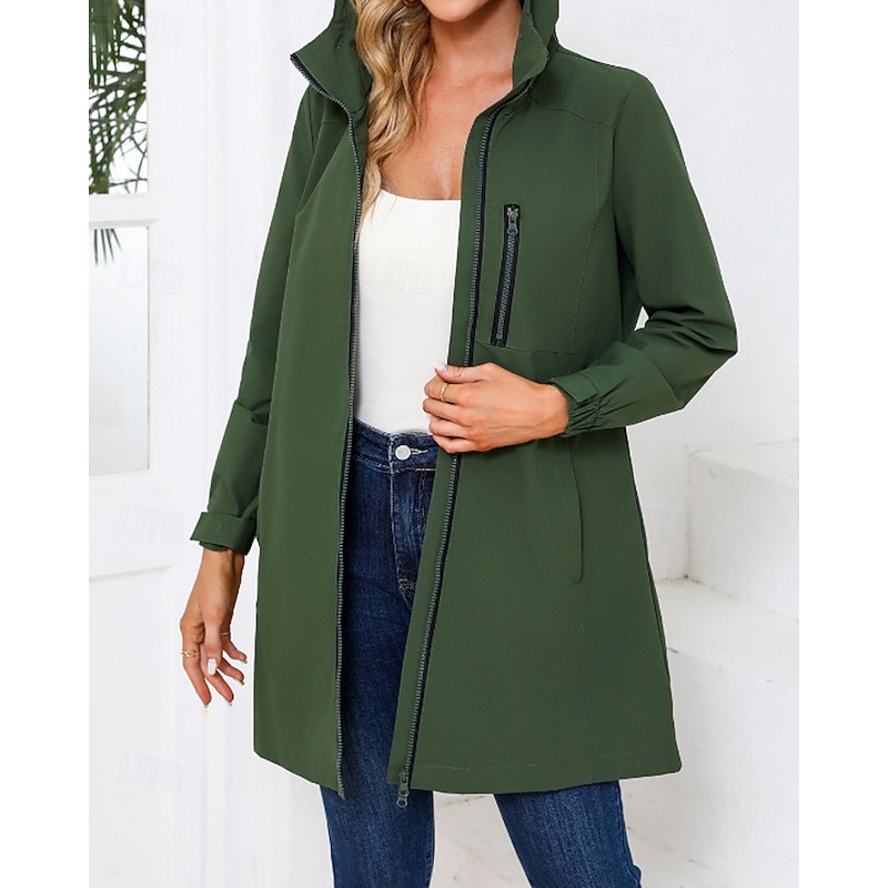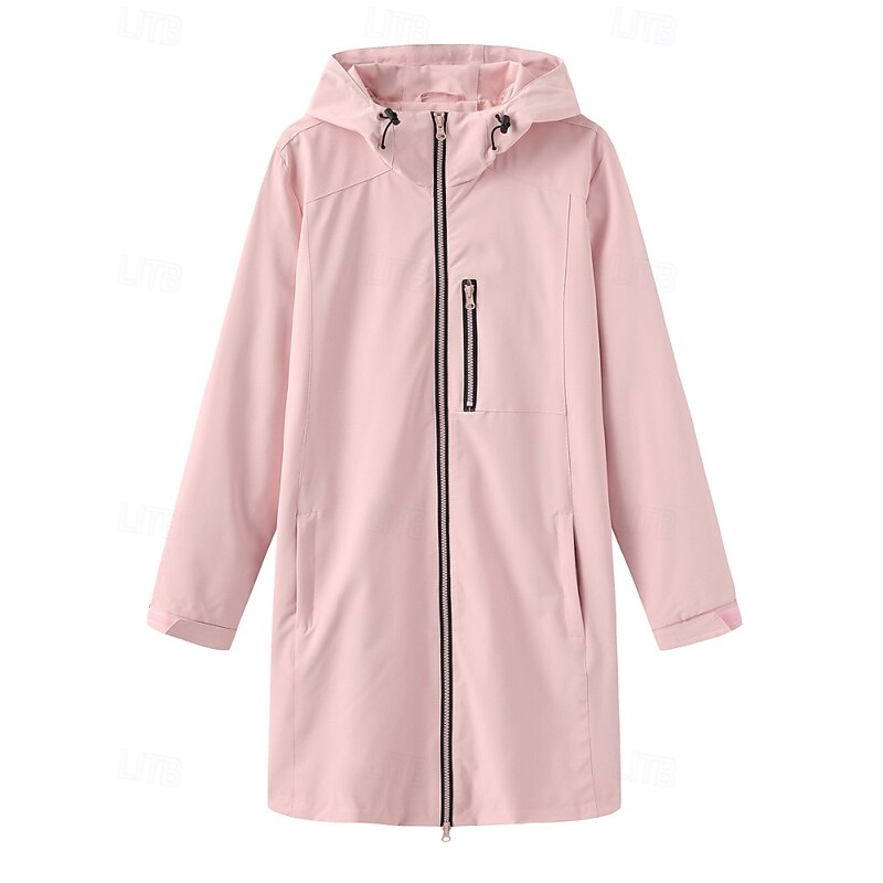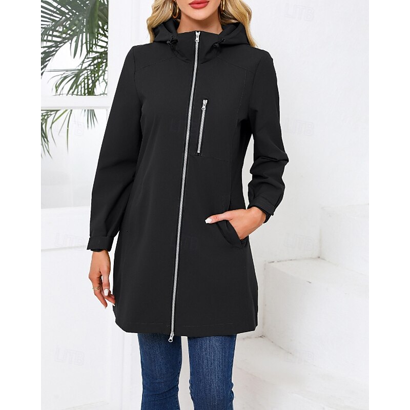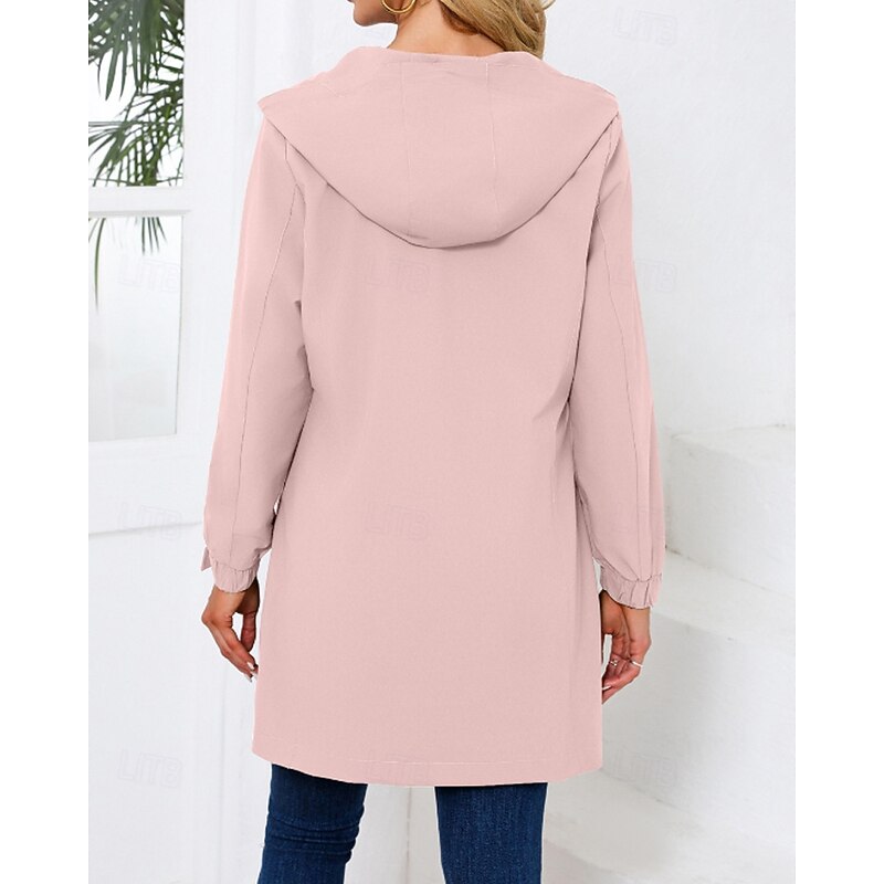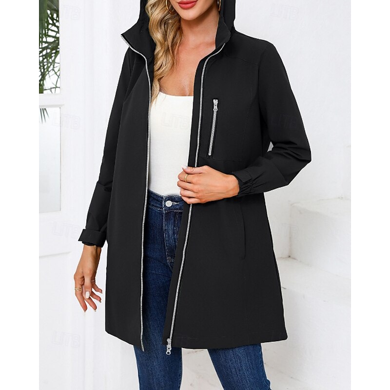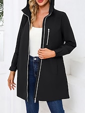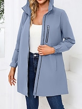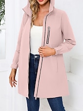 in-demand ! Women's Trench Coat heated pleasant Zipper Pocket Fashion Plain Street Going out Zipper Long Hooded Regular Fit Long Sleeve Outerwear Black Pink Sky Blue Fall Winter