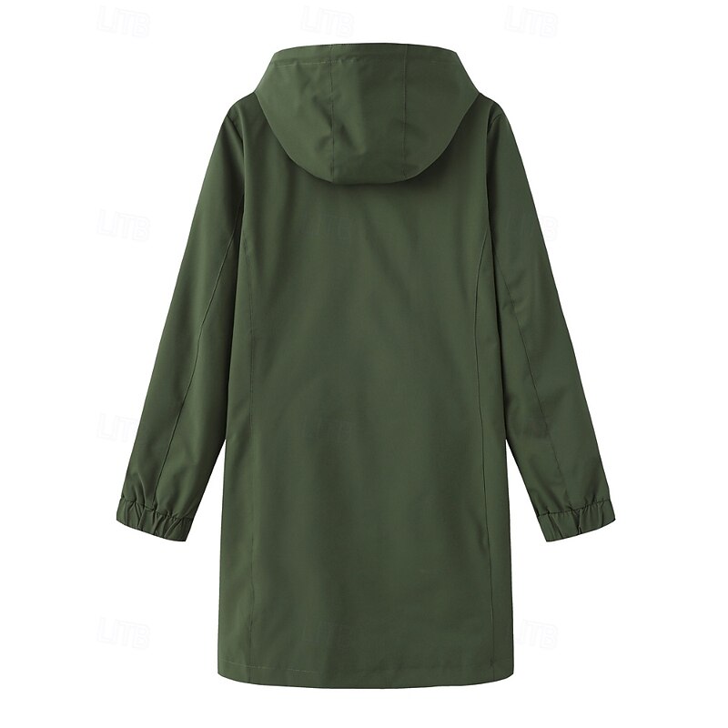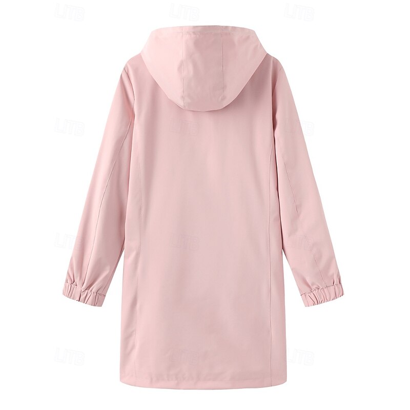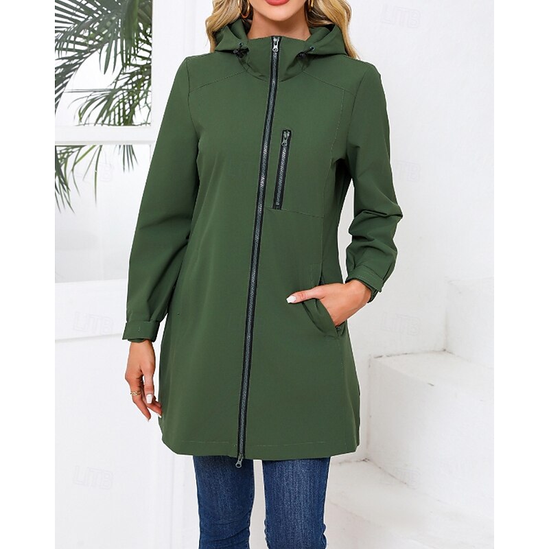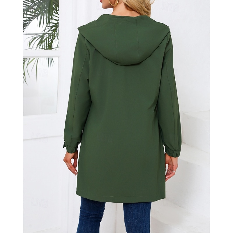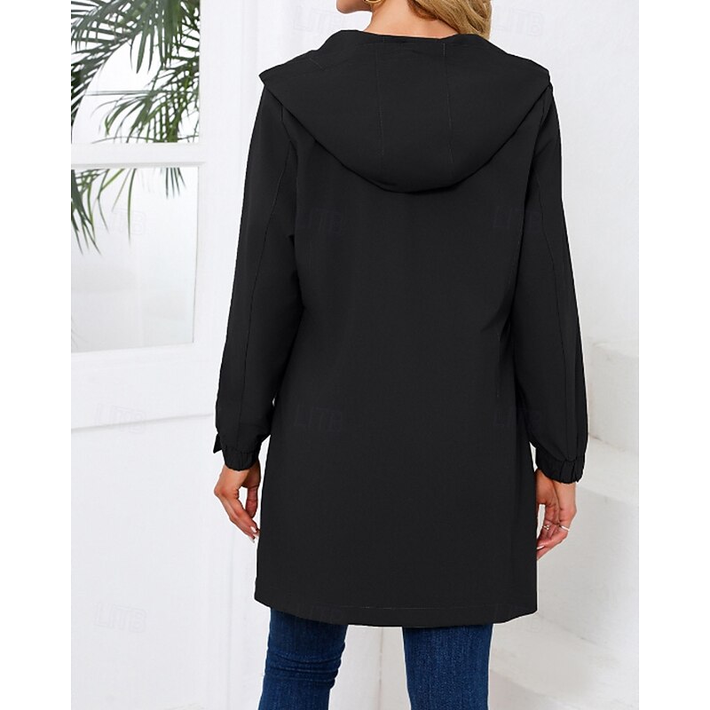 in-demand ! Women's Trench Coat heated pleasant Zipper Pocket Fashion Plain Street Going out Zipper Long Hooded Regular Fit Long Sleeve Outerwear Black Pink Sky Blue Fall Winter