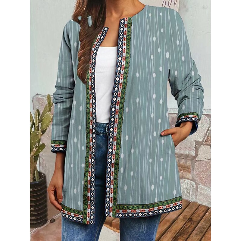 Why Choose Women's Casual Jacket Windproof cozy Pocket Color Block Open Front with Pockets present-day Geometric Casual Daily Casual Daily Regular Crewneck Loose Fit Long Sleeve Outerwear Light Blue Black White Fall?
