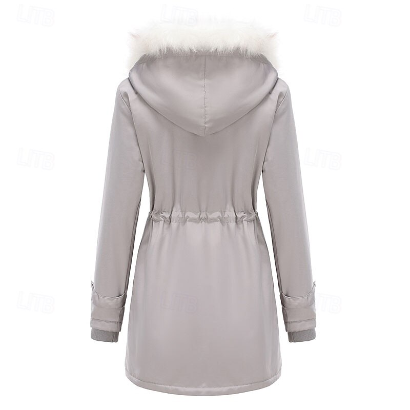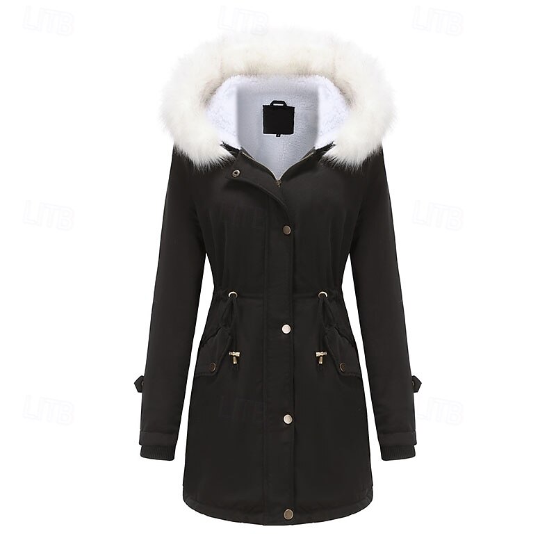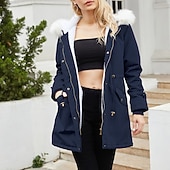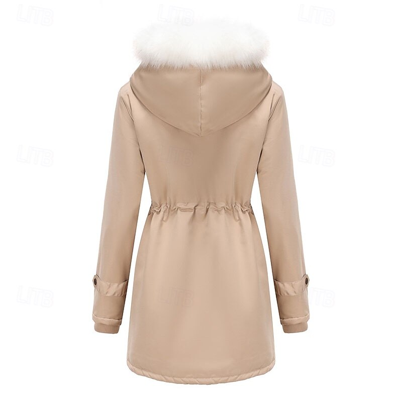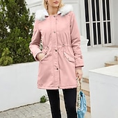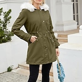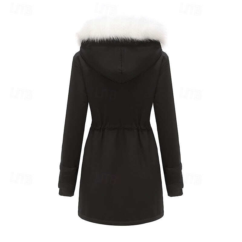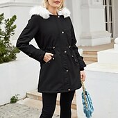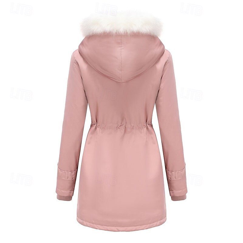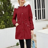 More information about Women's Parka thermal pleasant Zipper Pocket With Belt Fur Collar Casual Solid Color Vacation Street Casual Daily Wear Long Hooded Regular Fit Long Sleeve Outerwear Black Pink Wine Winter