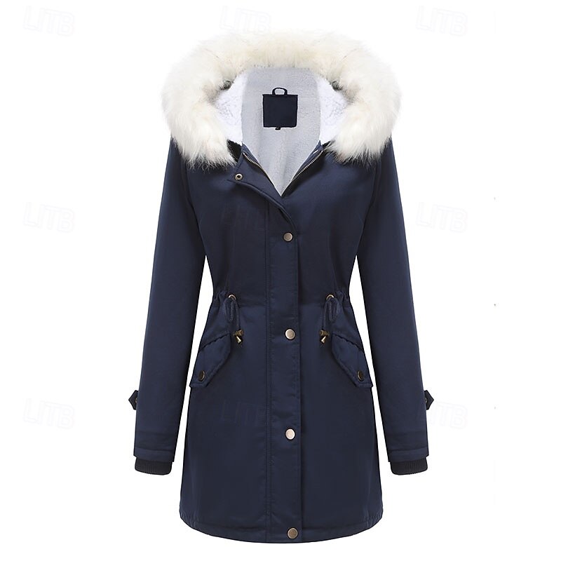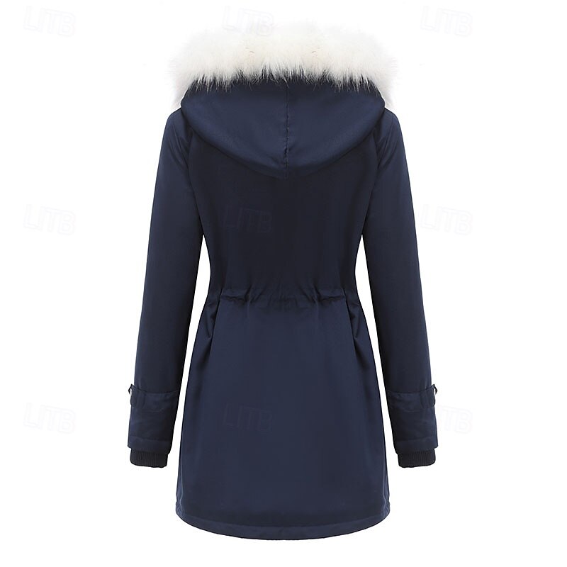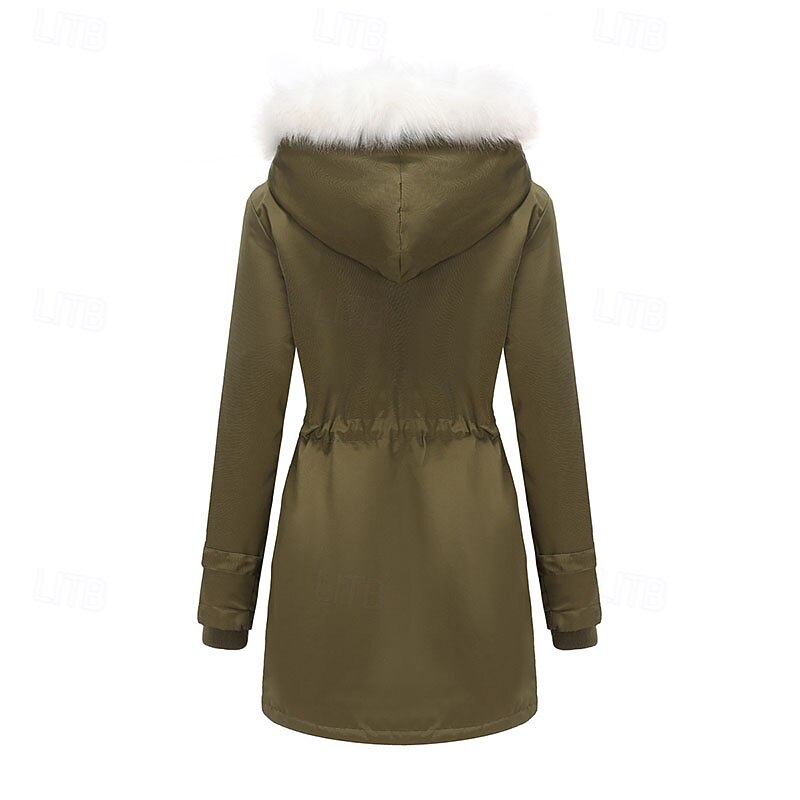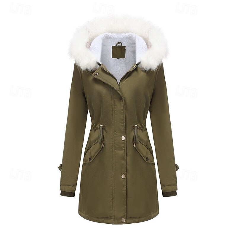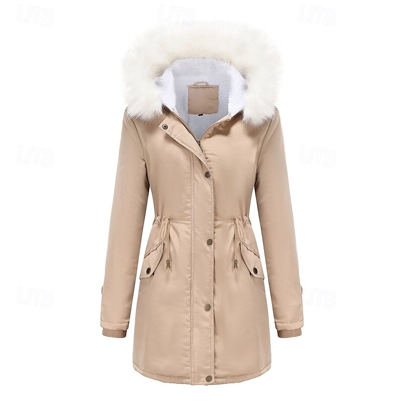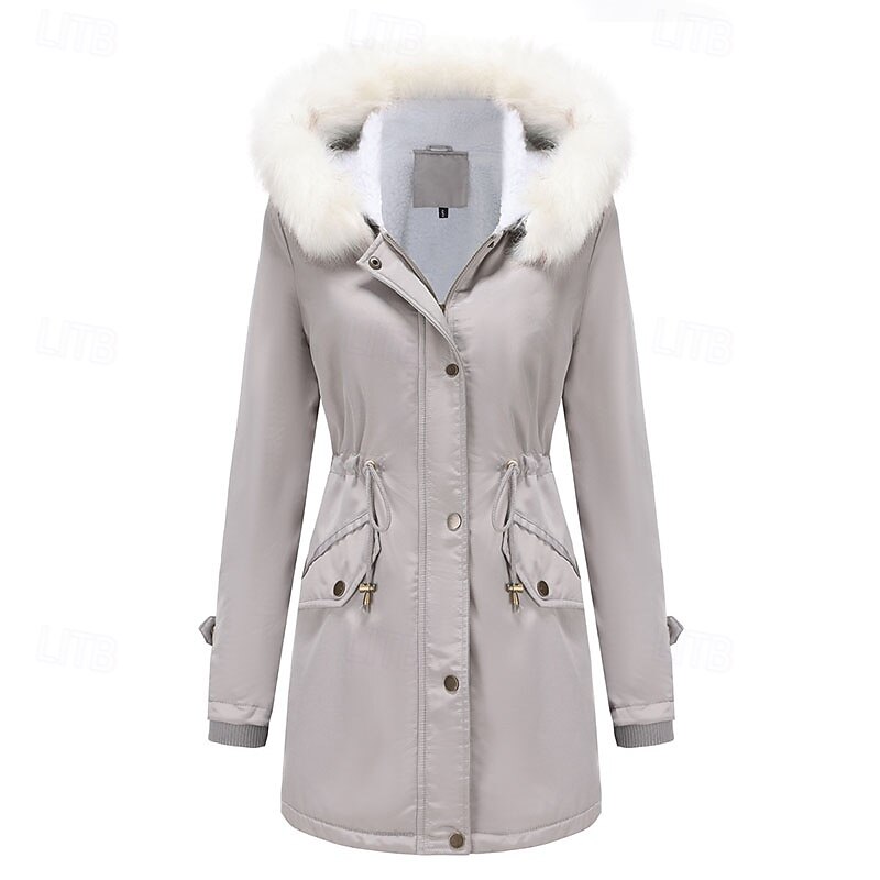 More information about Women's Parka thermal pleasant Zipper Pocket With Belt Fur Collar Casual Solid Color Vacation Street Casual Daily Wear Long Hooded Regular Fit Long Sleeve Outerwear Black Pink Wine Winter