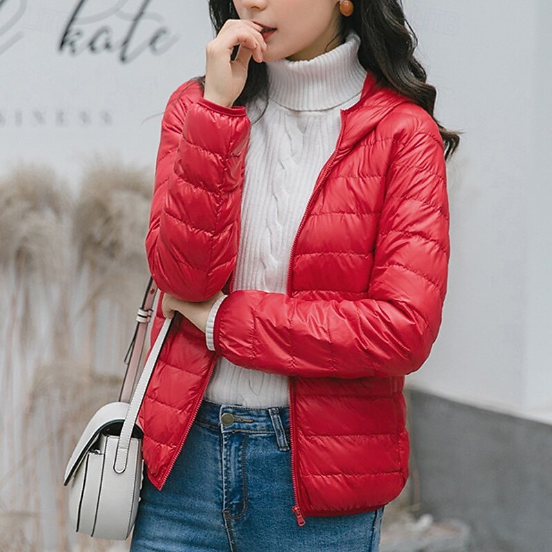 This Women's Down Jacket Puffer Jacket Warm Comfortable Zipper Pocket Fashion latest Casual Plain Going out Weekend Zipper Regular Hooded Regular Fit Long Sleeve Outerwear Black White Light Green Winter combines elegant design with practical functionality. Every detail has been carefully considered to ensure you get the best possible experience. The supreme construction means this product will serve you well for years to come.